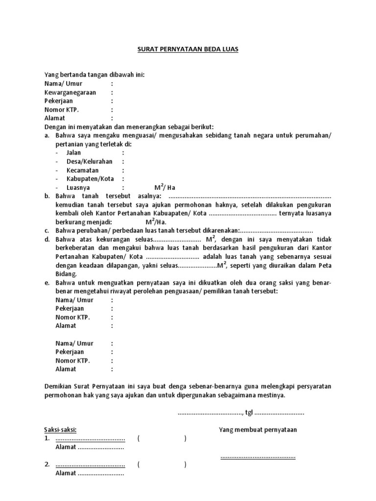 | Lihat Surat Pernyataan Beda Luas Pdf |