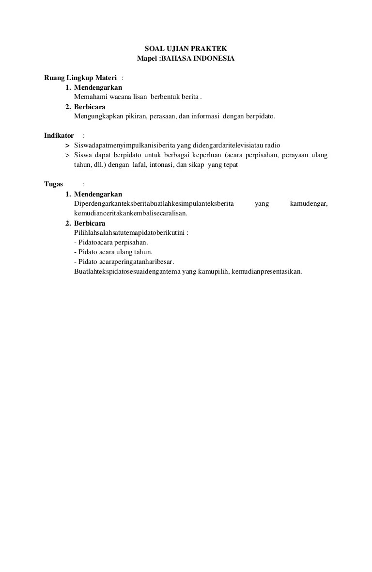Soal Ujian Praktek Bahasa Indonesia Sd Kelas 6 Dengan Pidato Untuk Ujian Praktek Kelas 6 |