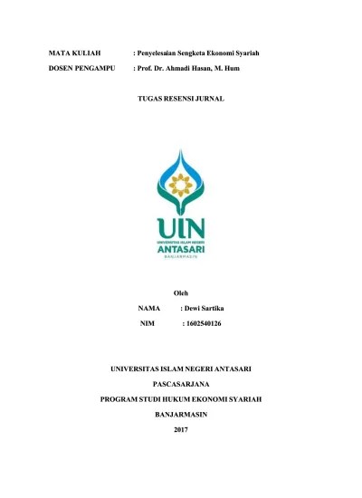 Penyelesaian Sengketa Ekonomi Syariah DOSEN PENGAMPU. Home RESENSI BUKU HUKUM EKONOMI ISLAM RESENSI BUKU HUKUM EKONOMI ISLAM.