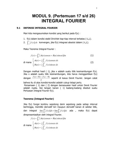 Lihat Modul 9 Pertemuan 17 S D 26 Integral Fourier |